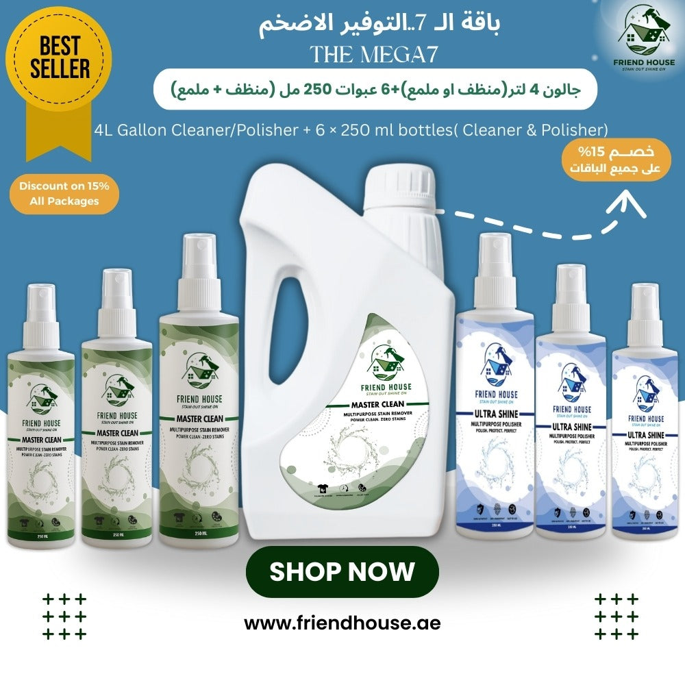 جالون 4 لتر ( منظف أو ملمع ) + 6 عبوات 250 مل ( منظف + ملمع )